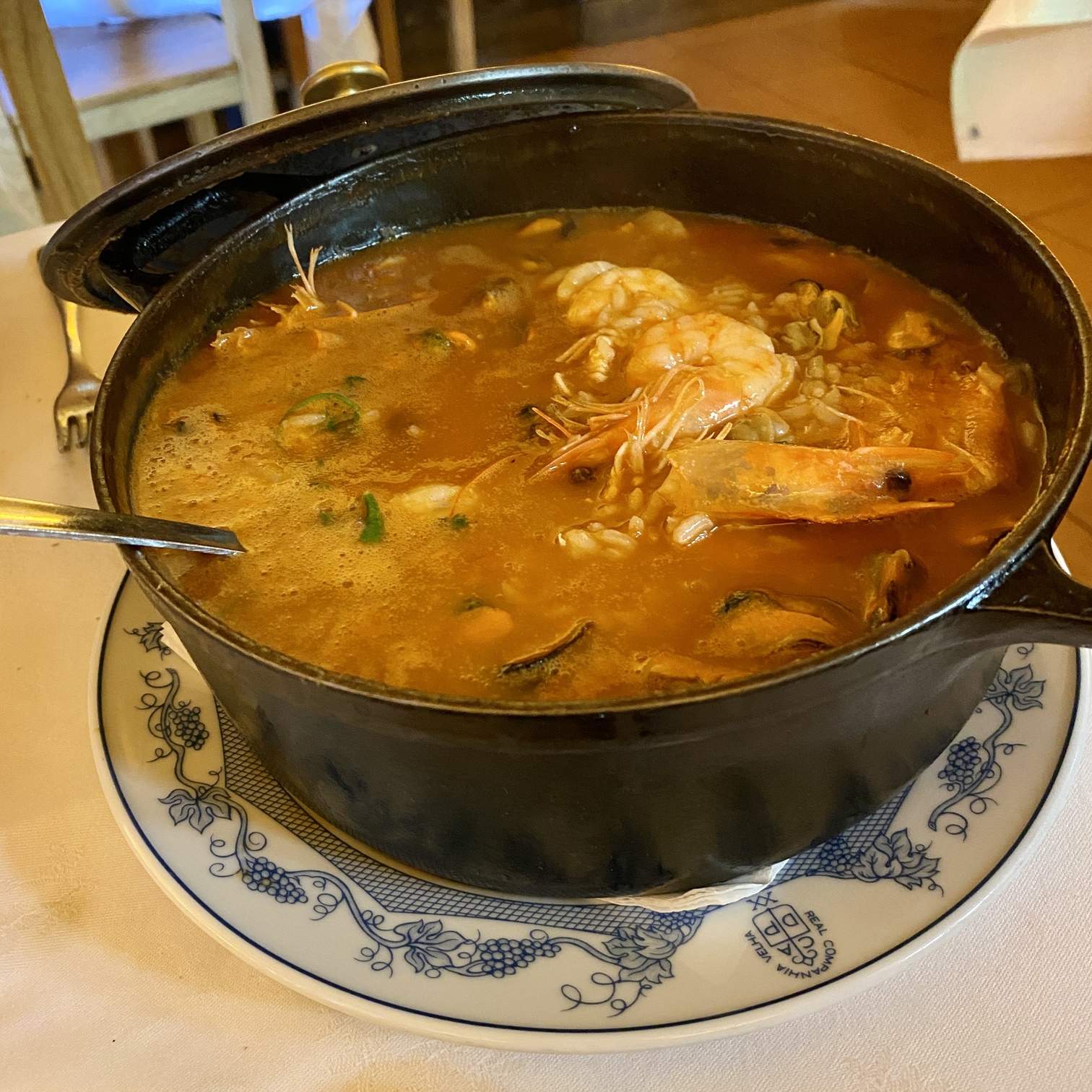 제가 시킨 요리는 구운 정어리(Grilled sardines)와 해물밥(shellfish rice 2 pax). 정어리구이는 처음 먹어본 것 같은데 고소하고 짭짤하니 맛있었습니다. 제가 원래 생선 비린내에 둔하긴 하지만 비린내도 못 느꼈고요. 생선을 좋아하시는 분들이라면 한 번쯤 드셔보는 것도 추천드립니다. 그리고 대망의 해물밥. 보통 포르투갈에서도 해물밥에 고수를 넣는 곳들이 많더라고요. 저는 고수를 잘 못 먹기 때문에 고수는 빼달라고 했더니 정말 한국의 해물탕 맛입니다. 다만 간이 좀 센..? 리뷰에서도 좀 짜다는 말이 많았는데 짜긴 하더라고요. less salt, please 하시면 좀 덜 짜게 해 준다고 하니 짠 걸 싫어하시는 분들은 참고하세요~! 짜긴 했지만 와인과 함께 맛있게 잘 먹었습니다. :)